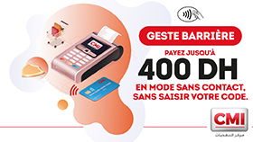 Depuis le début de la crise sanitaire du COVID 19, le paiement par carte bancaire en mode sans contact fait partie intégrante des mesures barrières conseillées lors de ses achats. Pour accompagner davantage ces mesures de prévention et sécuriser l’acte de paiement, le CMI, en partenariat avec ses partenaires bancaires et les différents systèmes de paiement, a relevé le plafond des paiements sans contact sans saisie du code sur ses TPE, passant de 200 DH à 400 DH.  Le rehaussement de ce plafond, effectif à partir de fin avril,  constitue une étape supplémentaire pour protéger la santé des consommateurs et des commerçants.