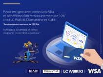 Ainsi, du 9 au 29 aout 2021, pour les premiers paiements en ligne sur les sites LC Waikiki, Diamantine et Kiabi, les détenteurs de carte Visa bénéficieront d'un remboursement de 10%.