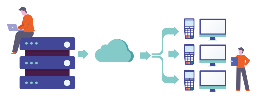 Particulièrement adaptée à l'usage de la grande distribution, des malls, des chaînes de magasins nationales, ou des chaînes d’hôtellerie/restauration, cette solution permet de rassembler l’ensemble des flux de paiement sur un seul serveur monétique via un réseau internet ou VPN.